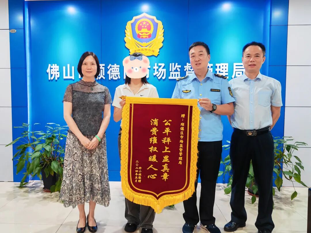 5月27日下午,许小姐将一面印有“公平秤上显真章 消费维权暖人心”的锦旗送到区市场监管局,对区市场监管局成功解决她与商家之间的纠纷给予高度评价并表示感谢。