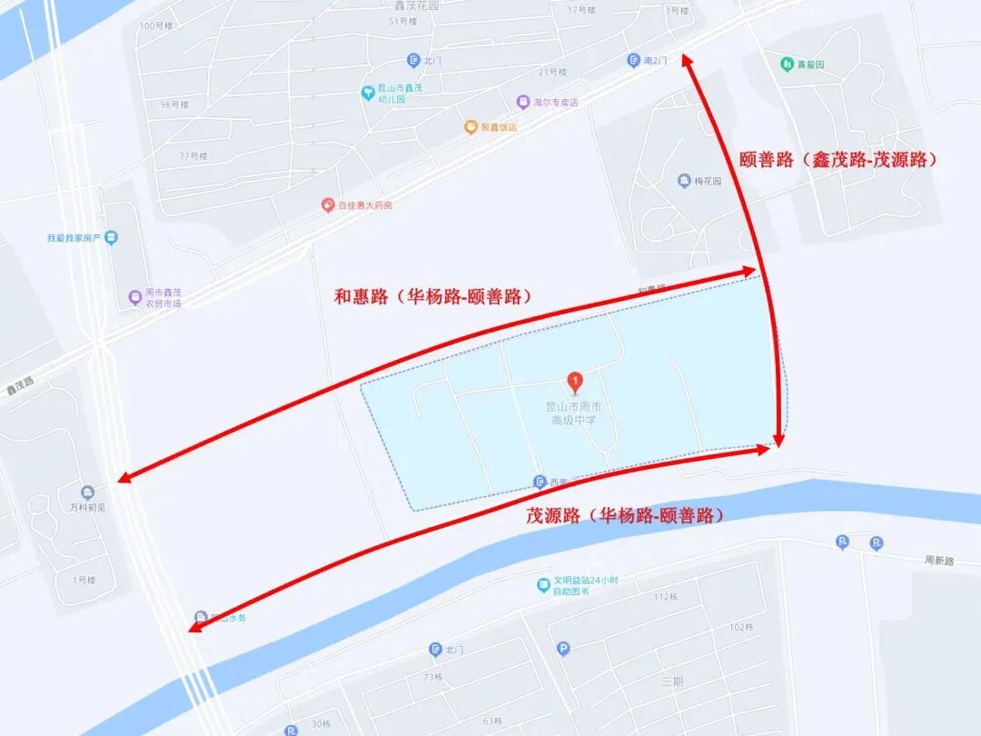 和惠路(华杨路—颐善路),茂源路(华杨路—颐善路),颐善路(鑫茂路—茂源路)。