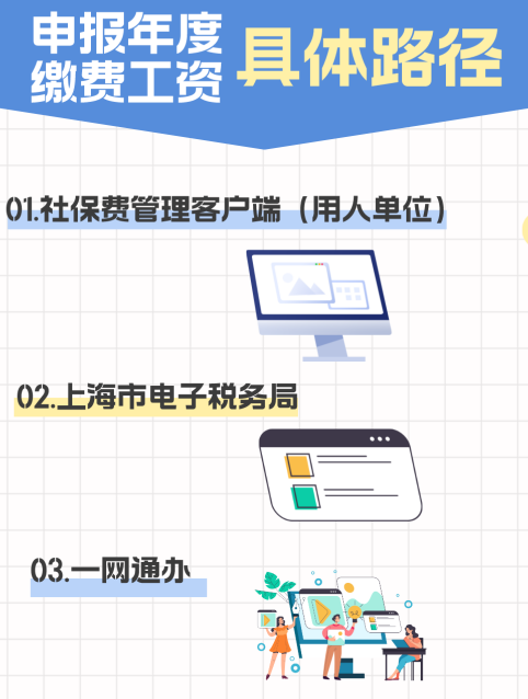 ②上海市电子税务局——我要办税——社保费办理——申报缴费——单位社保费年度缴费工资申报;
