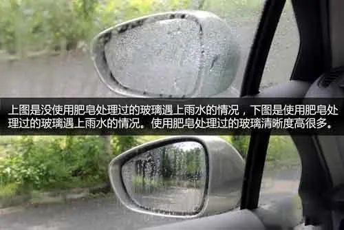 ● 确保挡风玻璃、后视镜干净。雨水容易让我们的车玻璃患上“近视眼”,可以提前在挡风玻璃和后视镜上喷上除雨剂,或用湿肥皂涂抹后擦干,可以很好地保持雨天行驶时玻璃的清晰度。