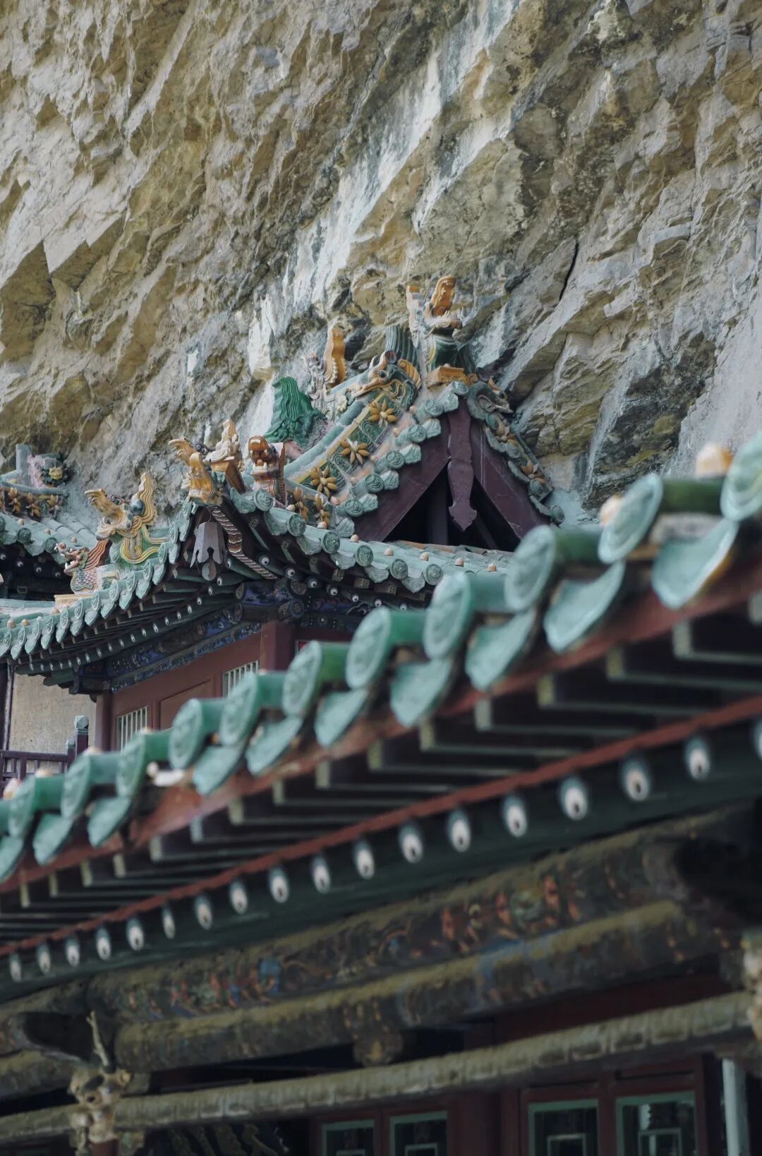 悬空寺位于山西大同,因整座寺院像悬挂在悬崖上而得名。悬空寺始建于北魏后期(491年),距今已有一千五百多年,是佛、道、儒三教合一的独特寺庙。历经1500多年的风雨、地震各种灾害侵袭,悬空寺依然巍峨不倒。很多人以为悬空寺是下面十几根木柱支撑而起的,事实上有些木柱根本不受力,真正支撑重量的是插进岩石内的横木飞梁。