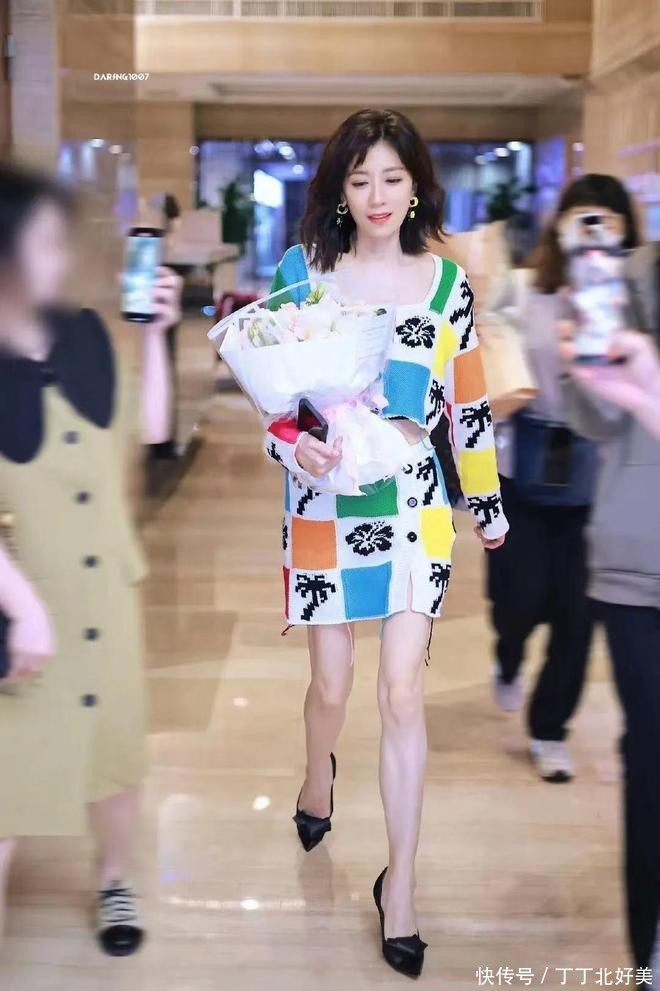 在下半身搭配同样设计的半身裙,用这些彩色的格纹还有印花的图案装饰,提升了她整体穿搭的时尚感,看上去丰富多彩,配上高跟鞋也显得很性感,尖头的高跟鞋拉伸了比例,腿长优势展现的淋漓尽致!