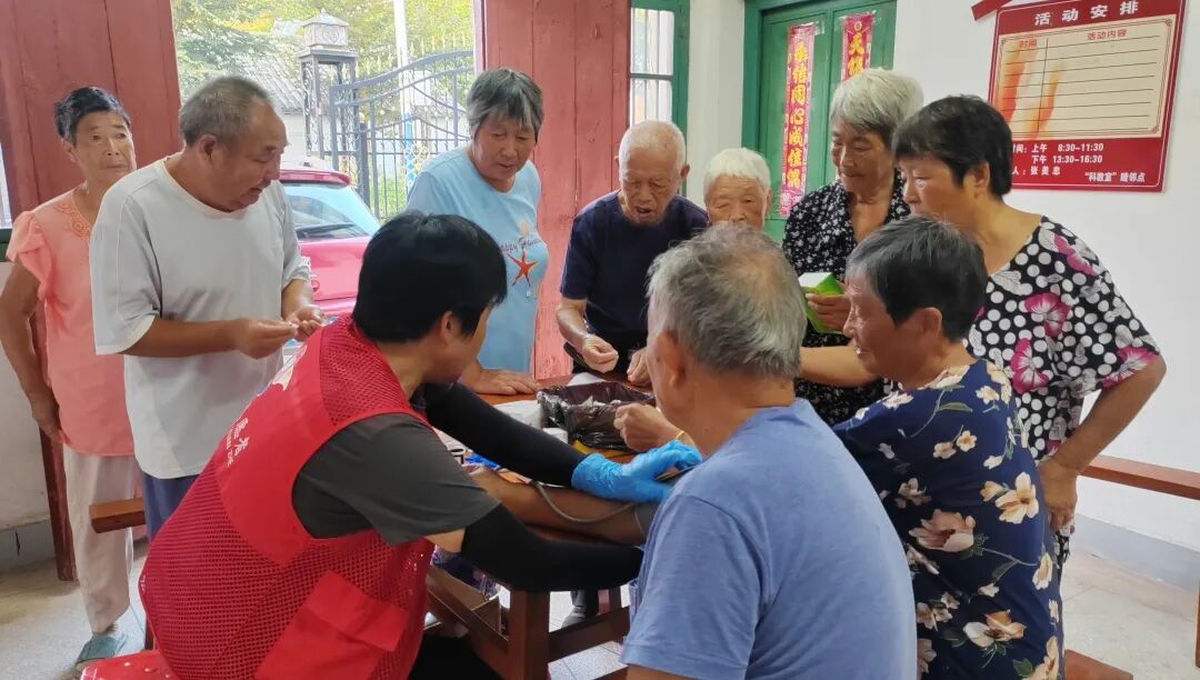 仙桥村、椿南村等新时代文明实践点开展为老年人量血压、测血糖活动,提醒血压高的老人服用降压药,平时加强锻炼,注意健康饮食,叮嘱子女关注老人身体状况,发现头晕不适等症状要及时到医院就医。