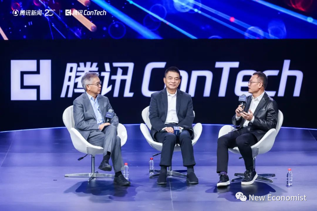 图:北京大学国家发展研究院副院长、教授黄益平,第十四届全国政协委员、集团董事长刘永好,红杉中国合伙人苏凯在腾讯ConTech大会现场。