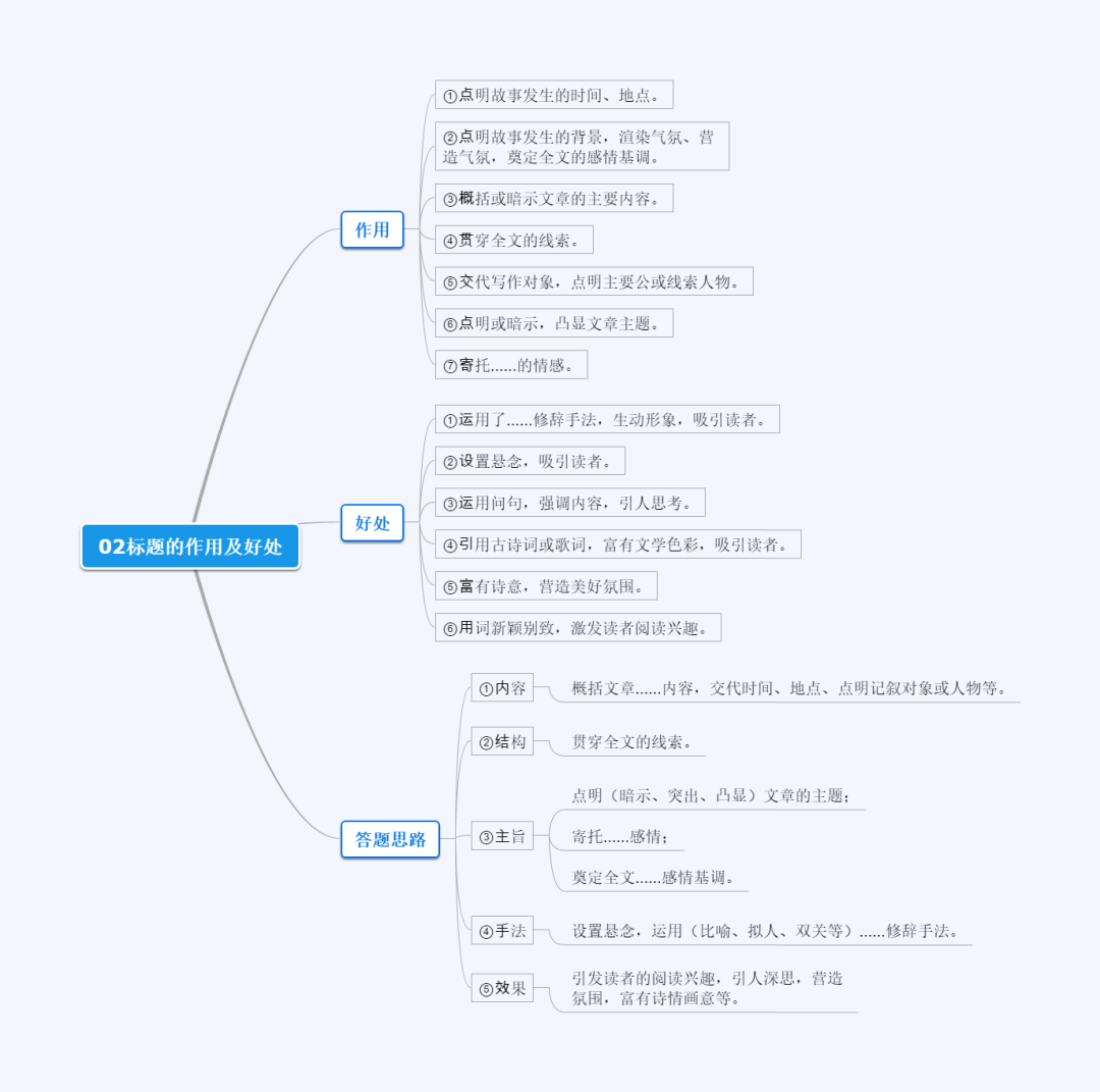 【解析】标题是文章的眼睛,其作用是交代文章的写作对象;关联主要情节,起到贯穿全文的线索作用;透露出作者的观点或感情倾向,暗示文章的主旨。标题有独特之处(修辞手法或写作手法)的,可以从寓意含蓄深刻、制造悬念、引人深思、激发读者的阅读兴趣等方面去分析。