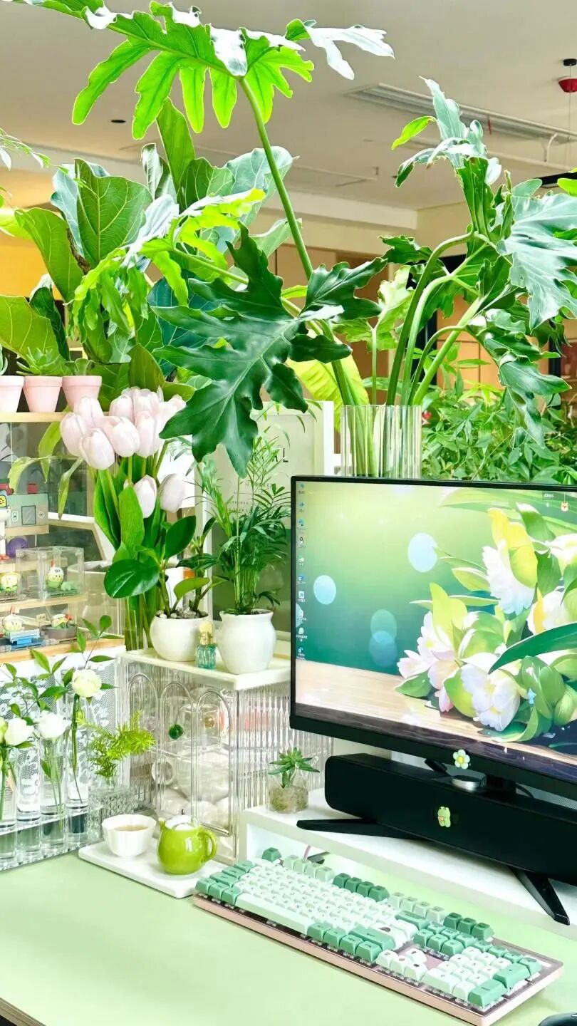 春天在明媚的阳光里在生活的各个角落里也可以在方寸的“工位”里办公桌上生机盎然的绿植慰藉着被工作套牢的你我
