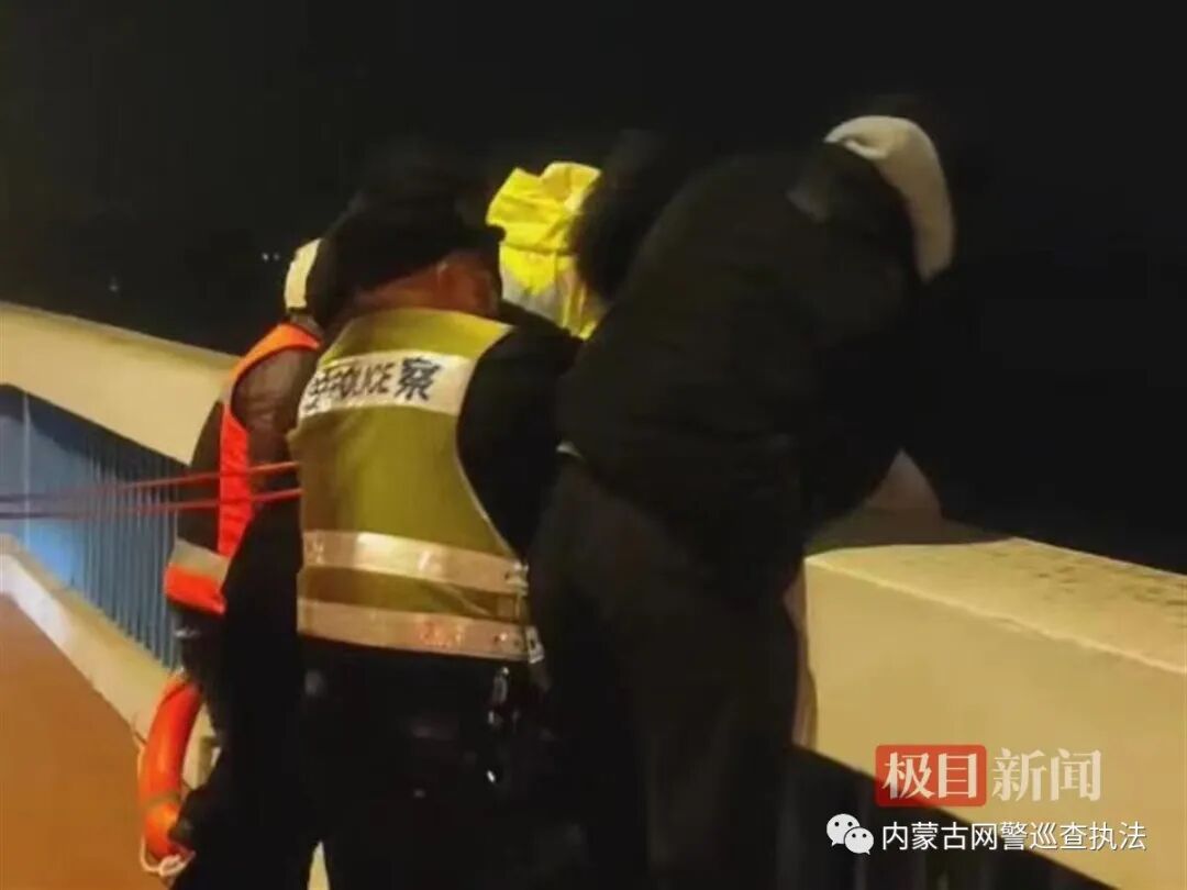 “快上来!有什么事好好说!”张坤上半身被惯性带出,仍死死拽住男子的手,想把他往桥上拽,可男子既不说话也不配合,由于护栏较高,张坤一个人无法将男子拽回桥上,同一巡组的辅警王进见状赶紧将救援绳索套在男子身上,几名路过的热心市民也果断出手相助,与张坤一起将男子从危险的边缘拉了回来。
